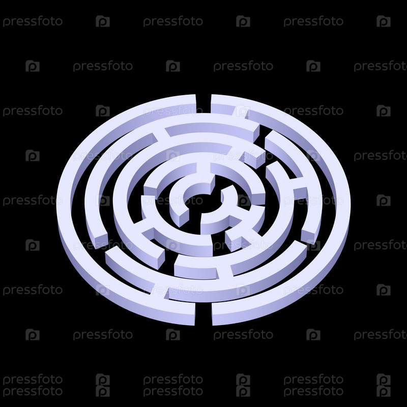 Белый круглый 3d лабиринт на черном фоне