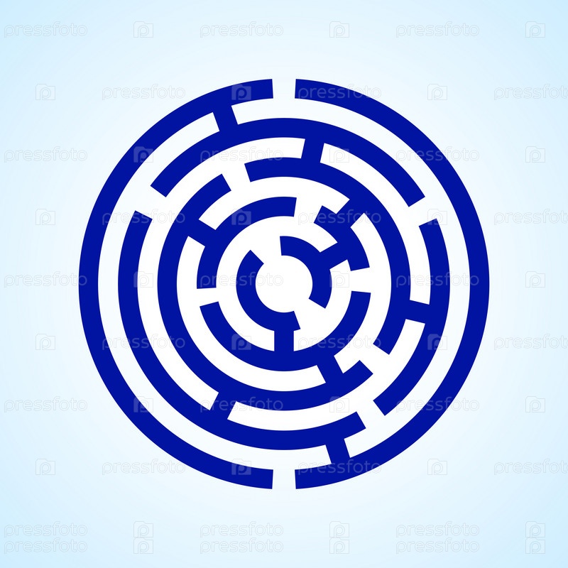 Круглый голубой лабиринт на светло-синем фоне