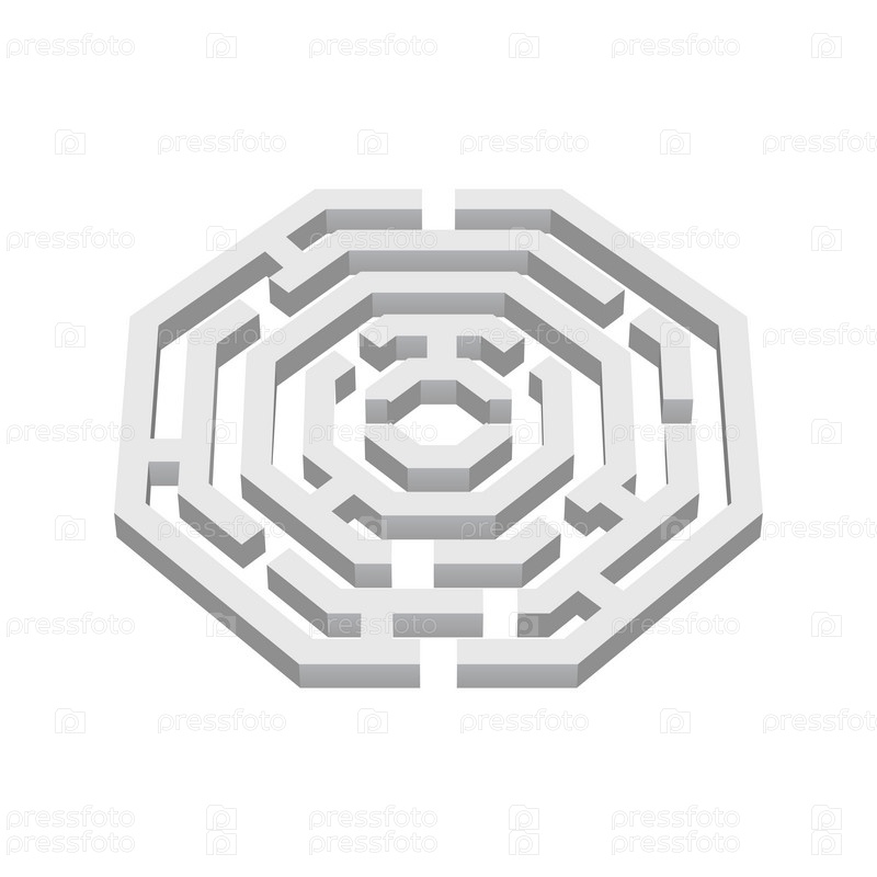 Белый 3d лабиринт в форме восьмиугольника на белом фоне