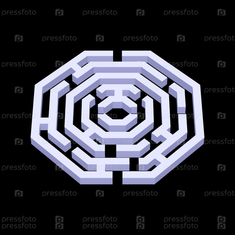 Белый 3d лабиринт в форме восьмиугольника на черном фоне