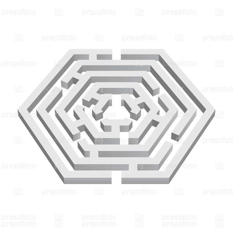Белый 3d лабиринт в форме шестиугольника на белом фоне