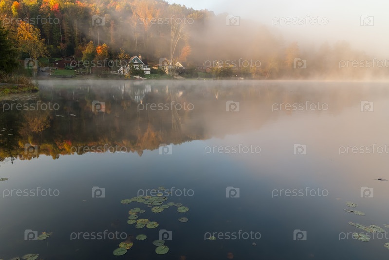 Туманное утро на берегу озера Рок