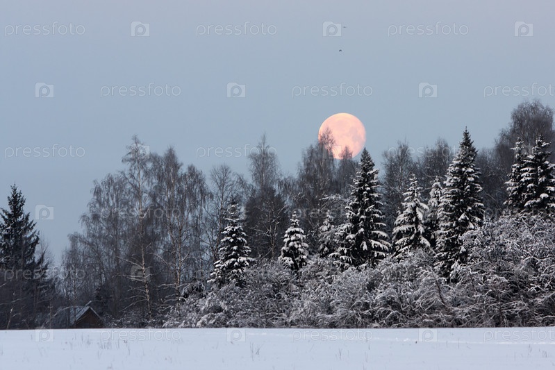 Зимний пейзаж с полной Луной