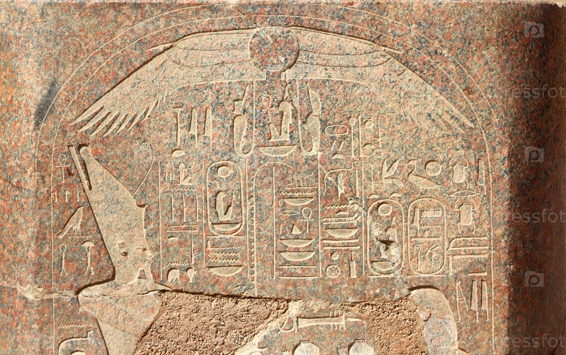 Древние изображения и иероглифы на гранитной стене в Карнакском храме, Египет