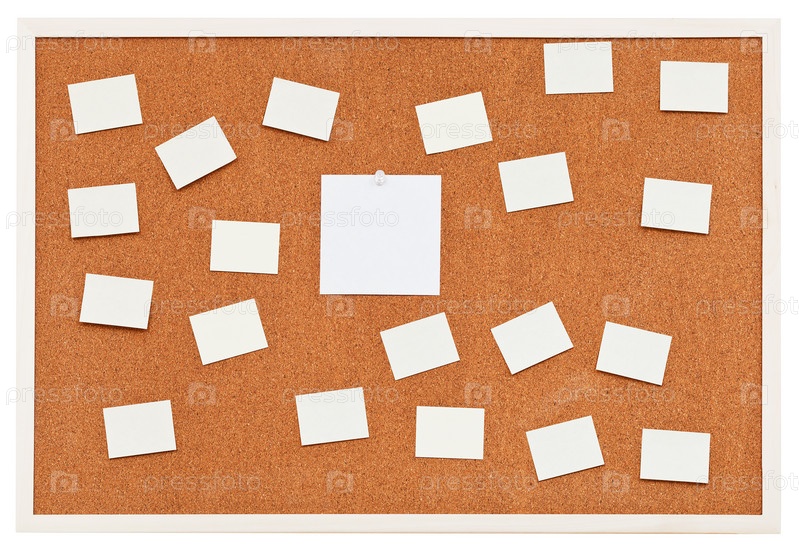 Листы бумаги на пробковой доске