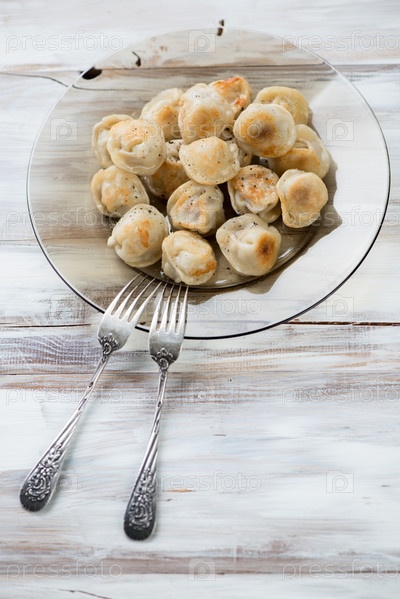 Тарелка с обжаренными пельменями