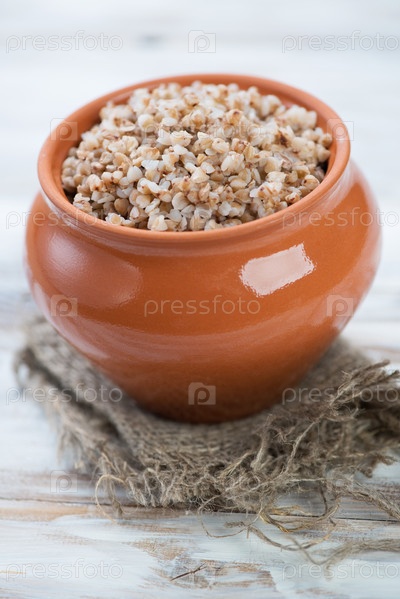 Керамический горшок с отварной гречкой