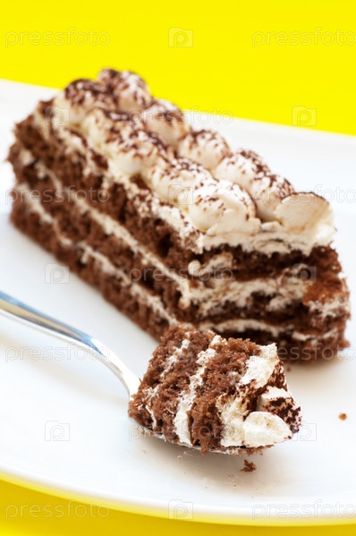 Шоколадный торт на желтом фоне