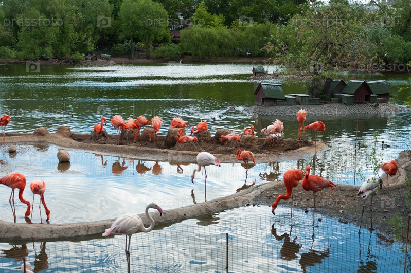 Розовые фламинго в Московском зоопарке. Россия