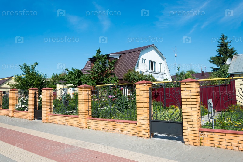 Дом за кирпичным забором