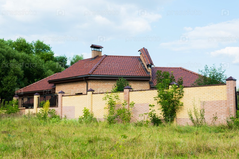 Дом и кирпичный забор