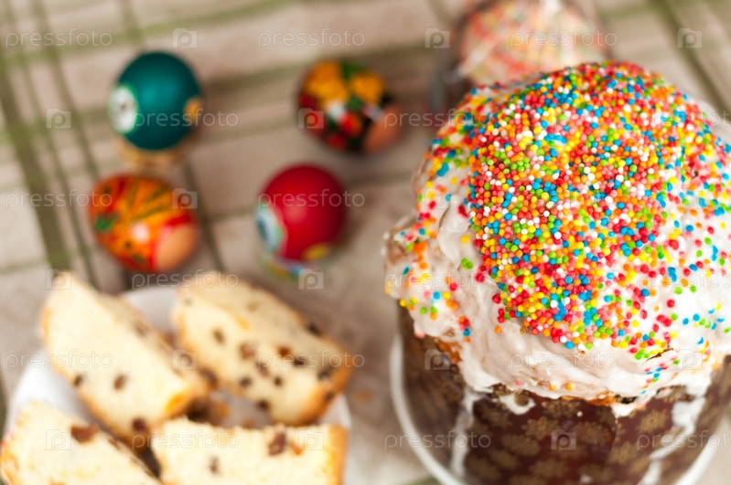 Пасхальный кулич и крашеные яйца