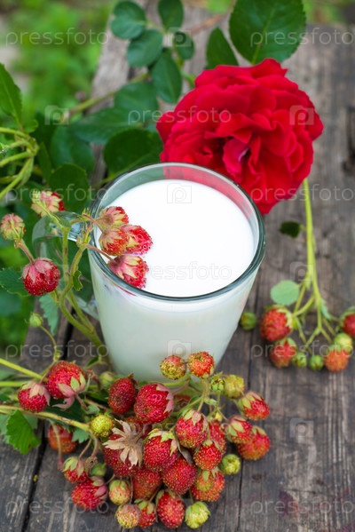 Чашка молока и свежая клубника