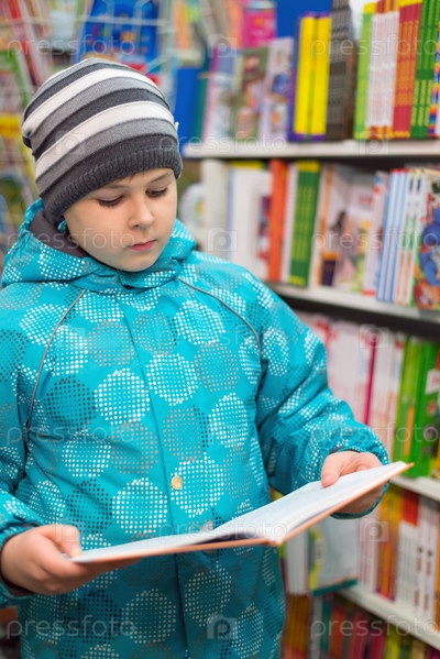 Мальчик выбирает книгу в магазине