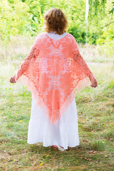 Женщина в вязаном пончо на природе