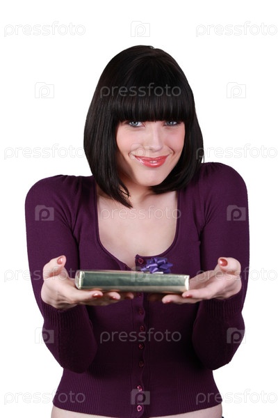 Женщина показывает подарок