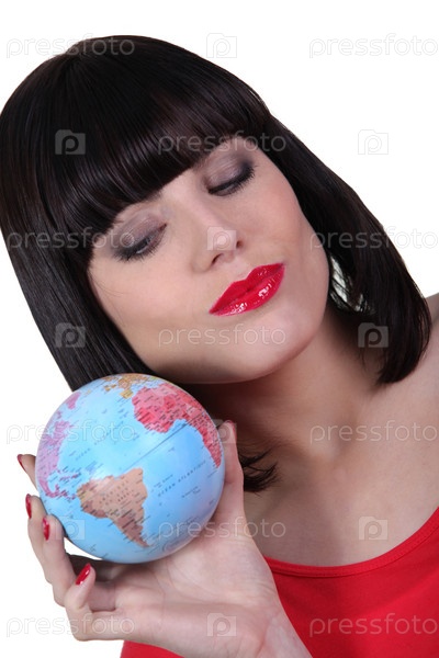 Женщина держит глобус