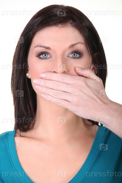 Женщина закрывает рот рукой