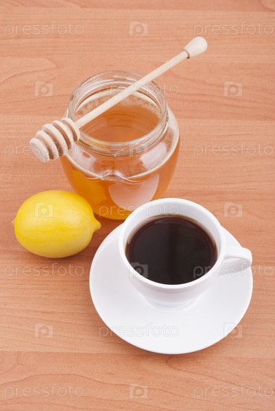 Свежий лимон, чай и мед в банке