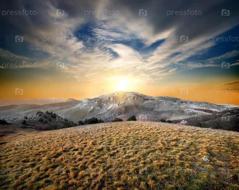 Горы и сухая трава