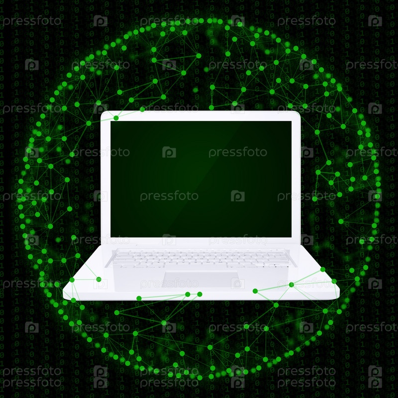 Ноутбук и сфера, состоящая из соединений