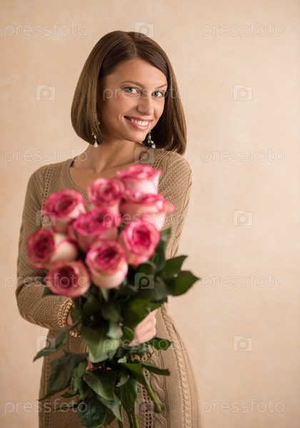 Красивая женщина с букетом цветов