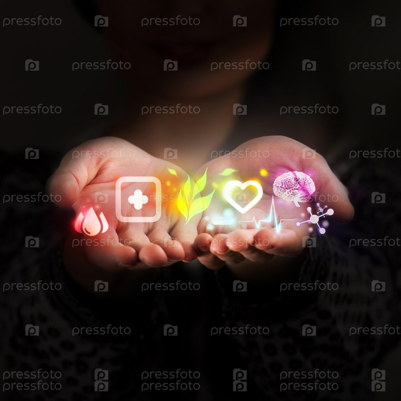 Руки доктора с медицинскими иконками