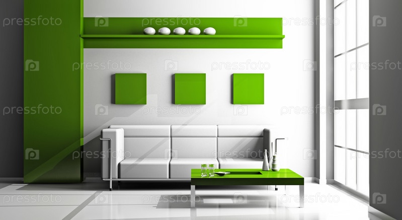 Современный интерьер гостиной или холла, 3D-иллюстрация