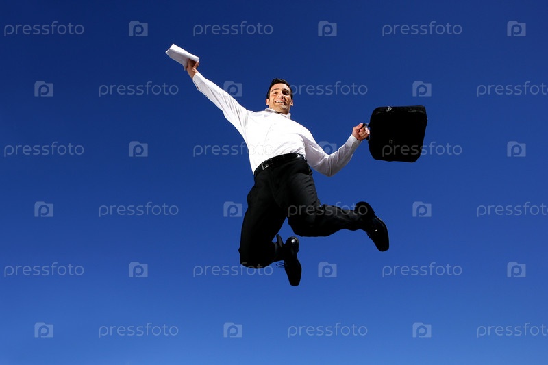 Успешный бизнесмен прыгает в воздухе