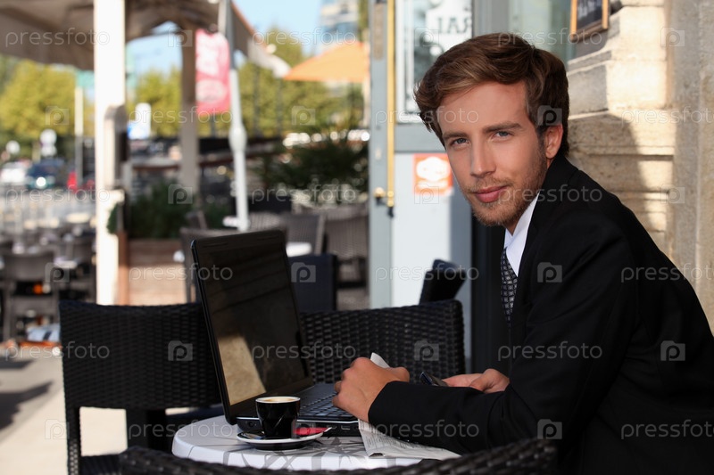 Молодой бизнесмен в кафе