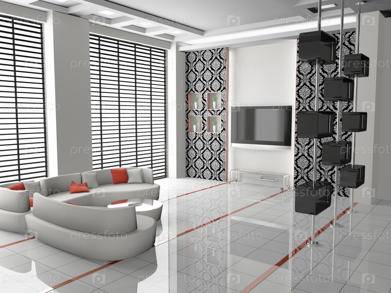 Современный интерьер гостиной, 3D-иллюстрация