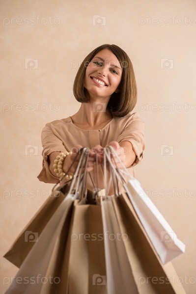 Счастливая женщина, держащая пакеты