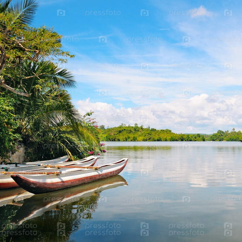 Прогулочные лодки на реке в лесу