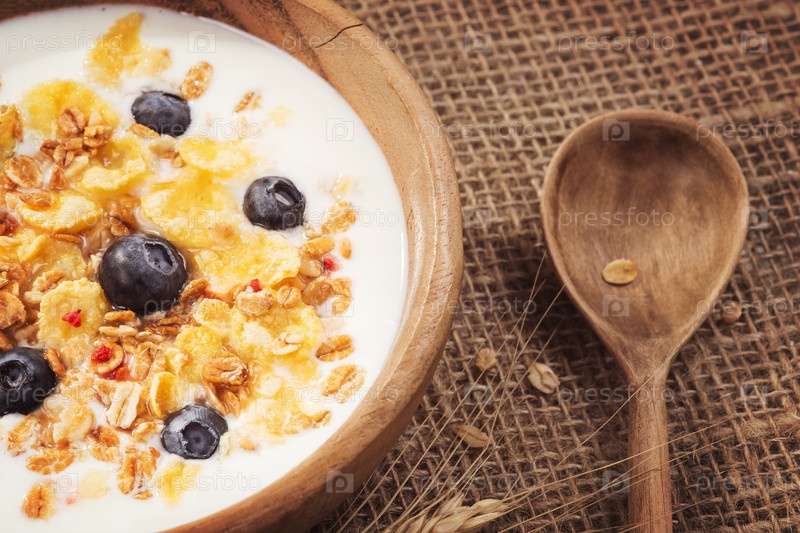 Мюсли с йогуртом и свежей черникой