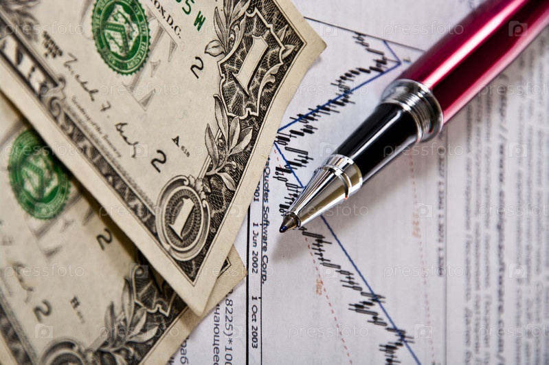 Доллары и ручка на биржевом графике