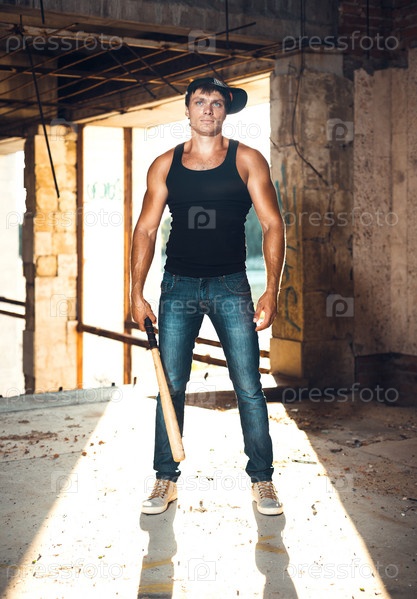 Мускулистый мужчина с бейсбольной битой