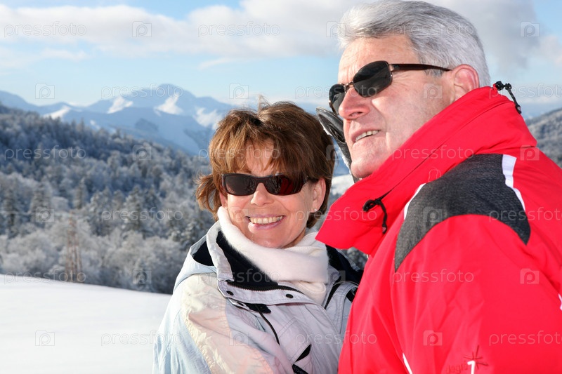 Пожилая пара отдыхает зимой на свежем воздухе