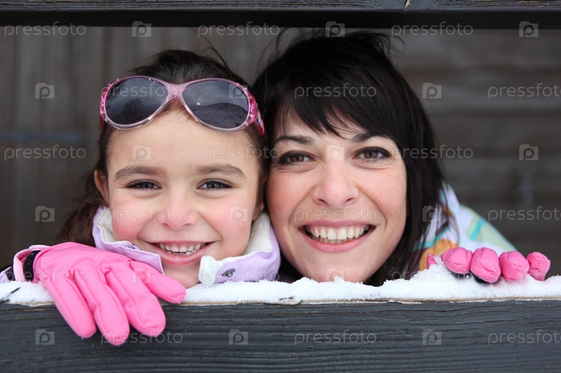 Мать и дочь играют в снегу