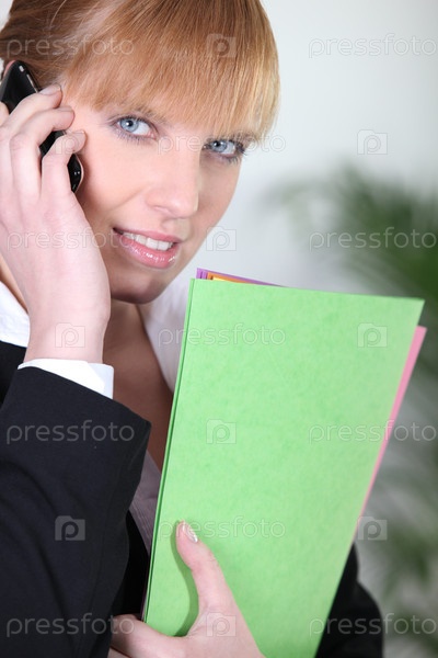 Рыжеволосая бизнес-леди с телефоном