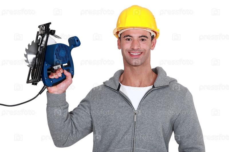 Рабочий с электрической пилой