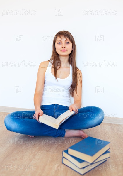 Молодая брюнетка читает книгу