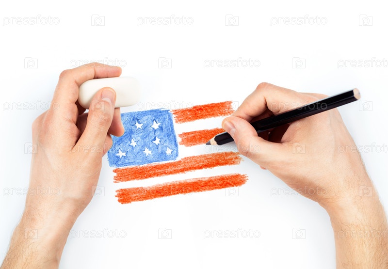 Мужские руки рисуют амнриканский флаг карандашом