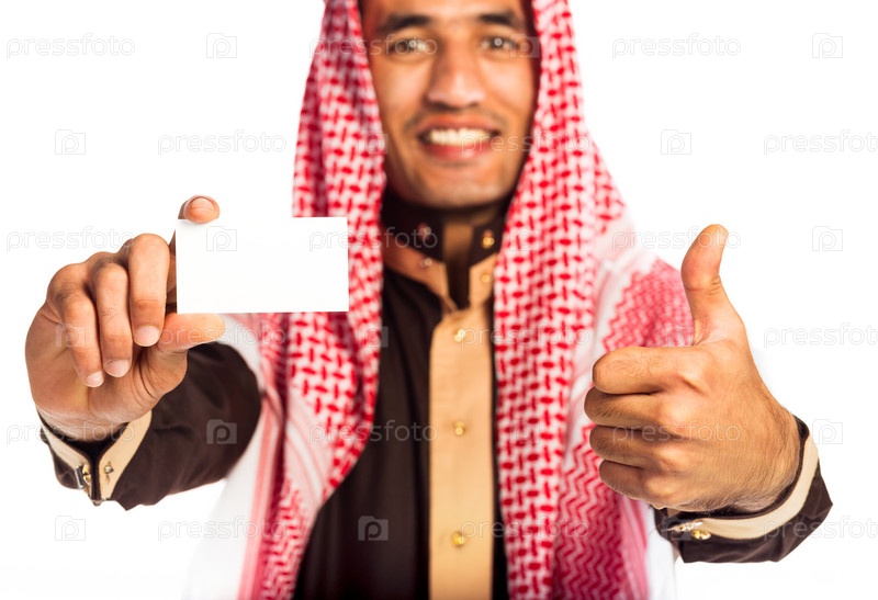 Молодой улыбающийся араб с визиткой