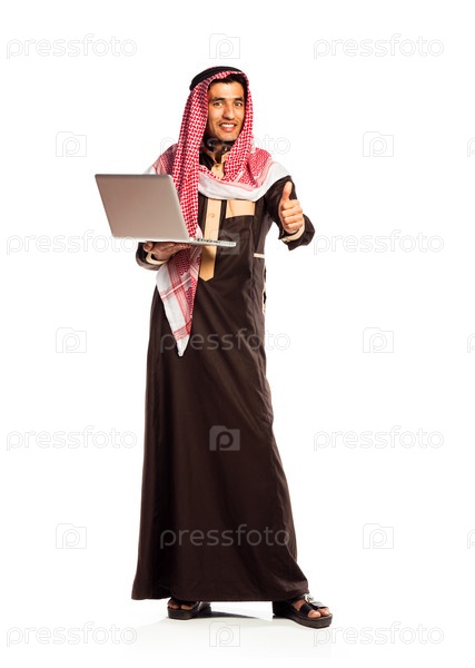 Молодой улыбающийся араб с ноутбуком