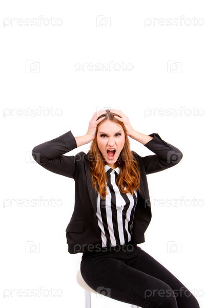Шокированная бизнес-леди в костюме
