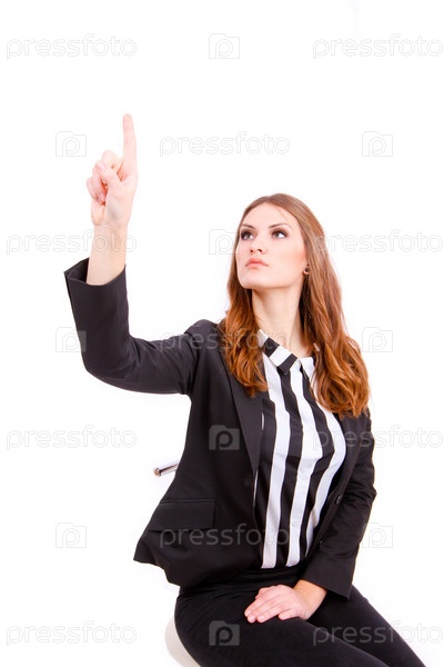 Бизнес-леди касается виртуального экрана