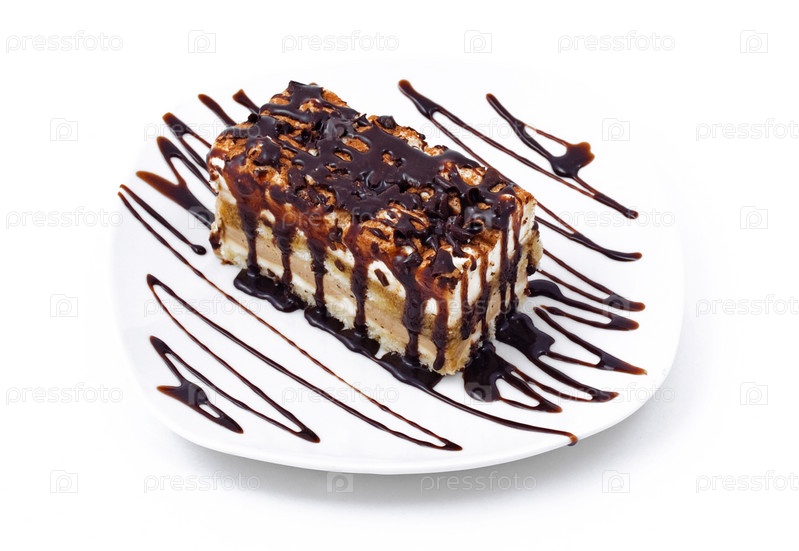Сладкий десерт на тарелке на белом фоне