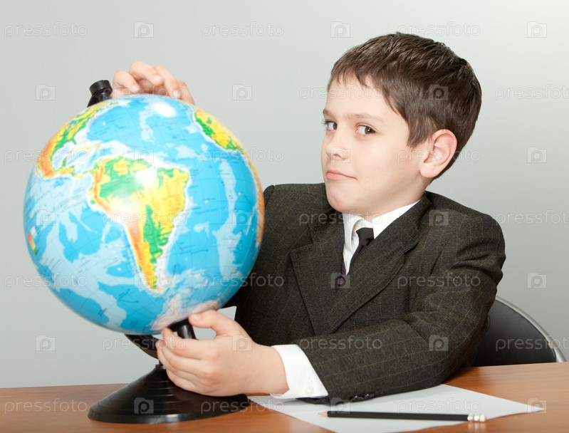 Школьник на уроке географии