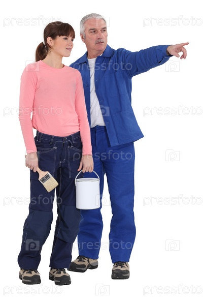 Мужчина учит дочь красить