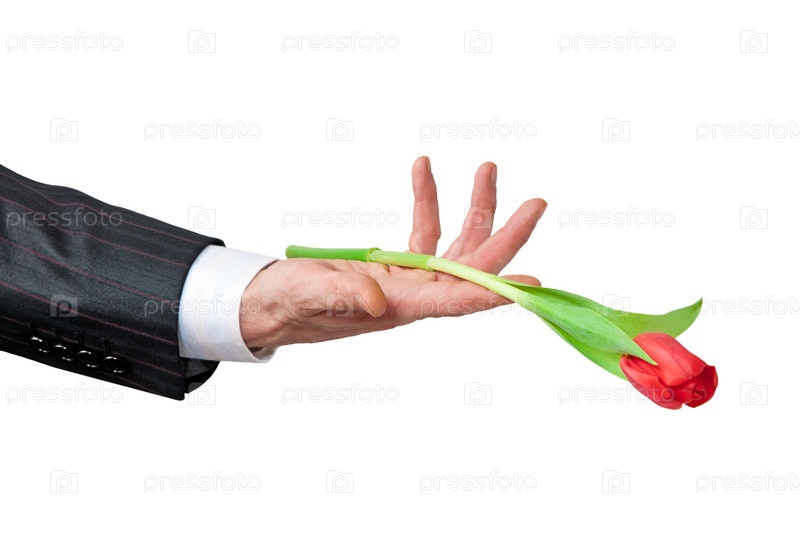 Тюльпан в мужской руке